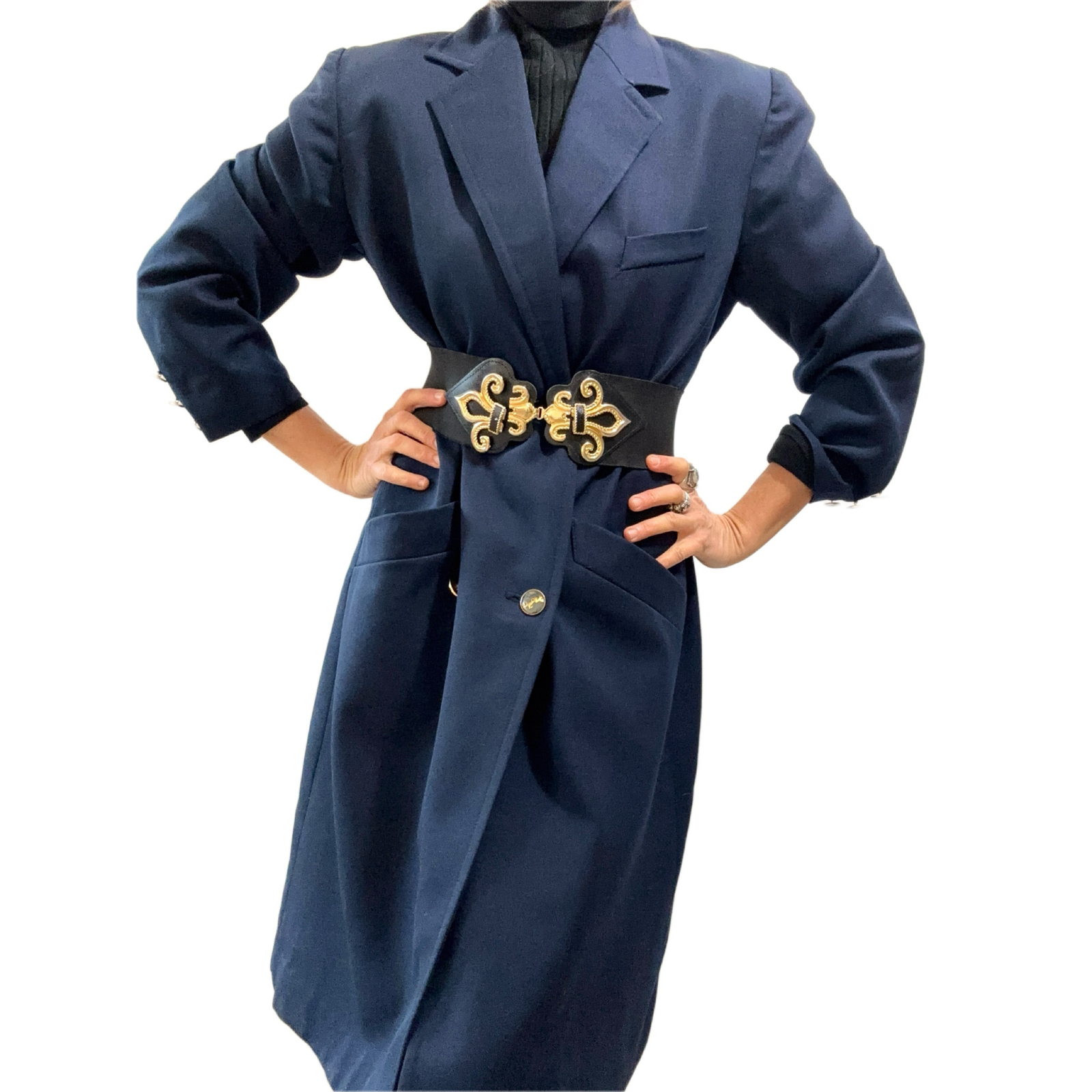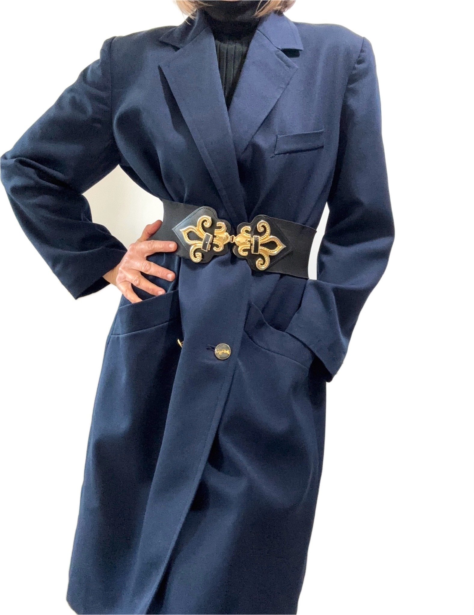 Manteau Long style gabardine marine en laine très chic