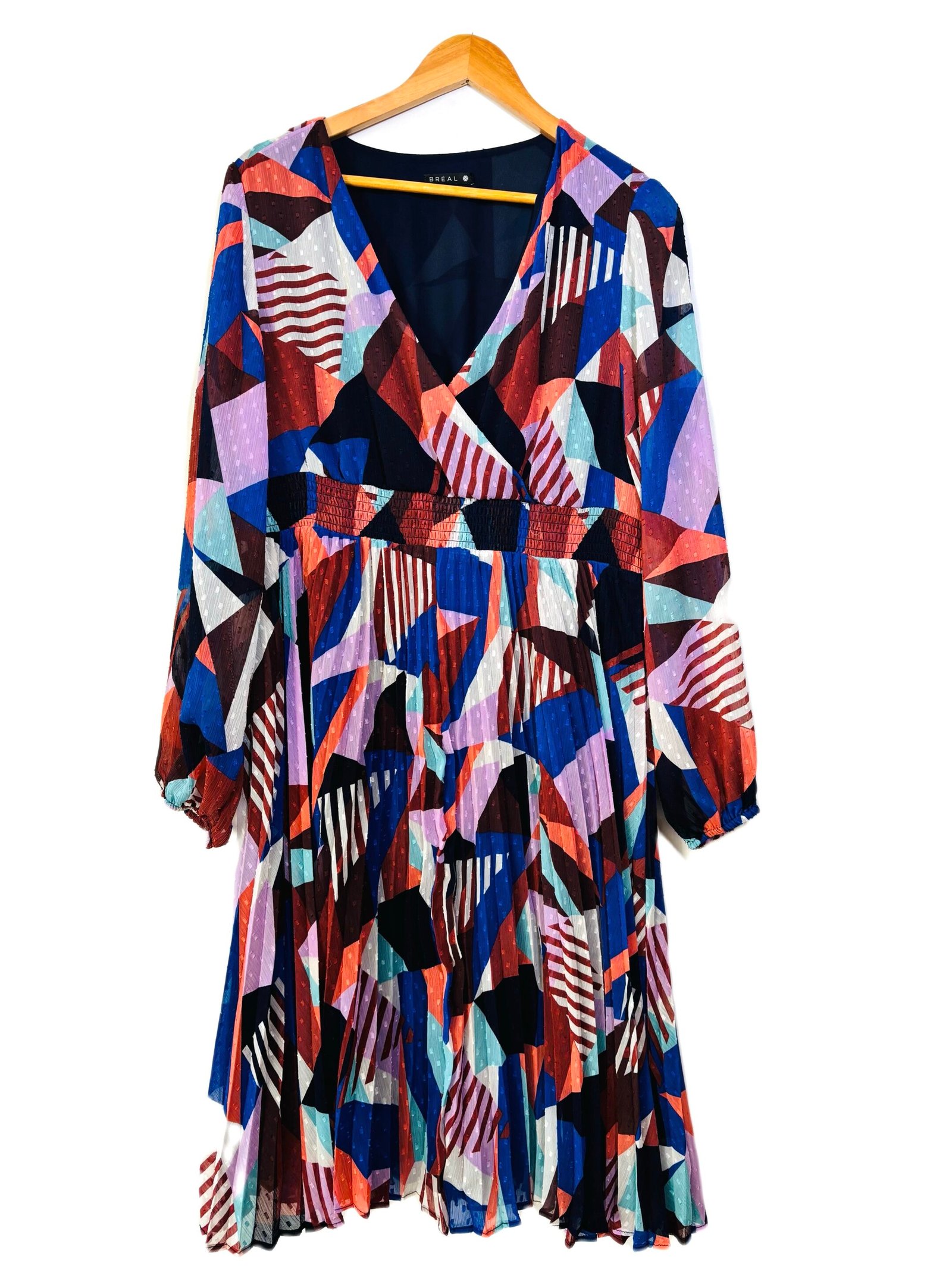 Robe Bréal indiqué taille 44 ( mieux 42 peut-être voir mesures) Longueur 110 cms Épaule à épaule 41 cms Taille élastique, doublée sur le bas Bas plissé, manches voiles