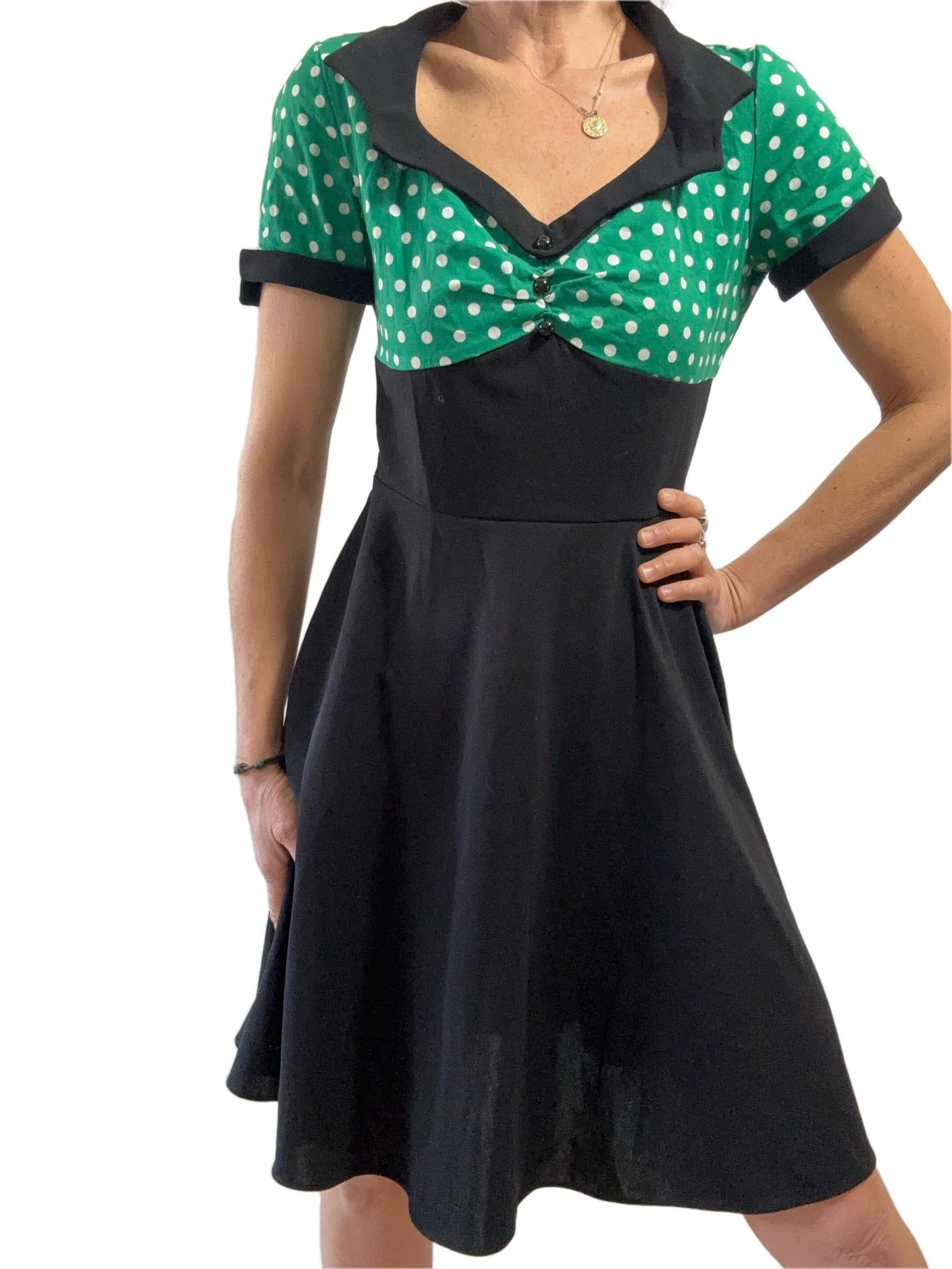 Adorable robe Rétro Vintage à Pois Taille S ( 34/36) Longueur 90 cms Épaule à épaule 36 cms